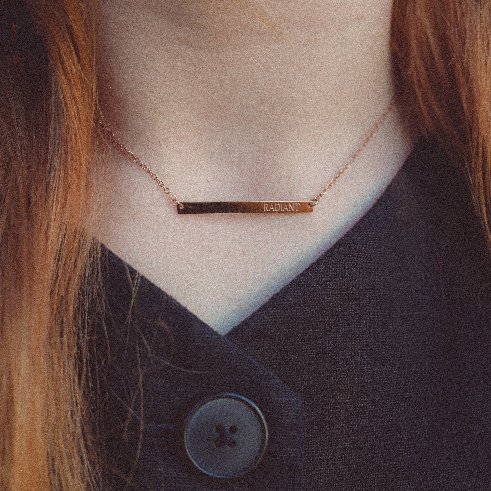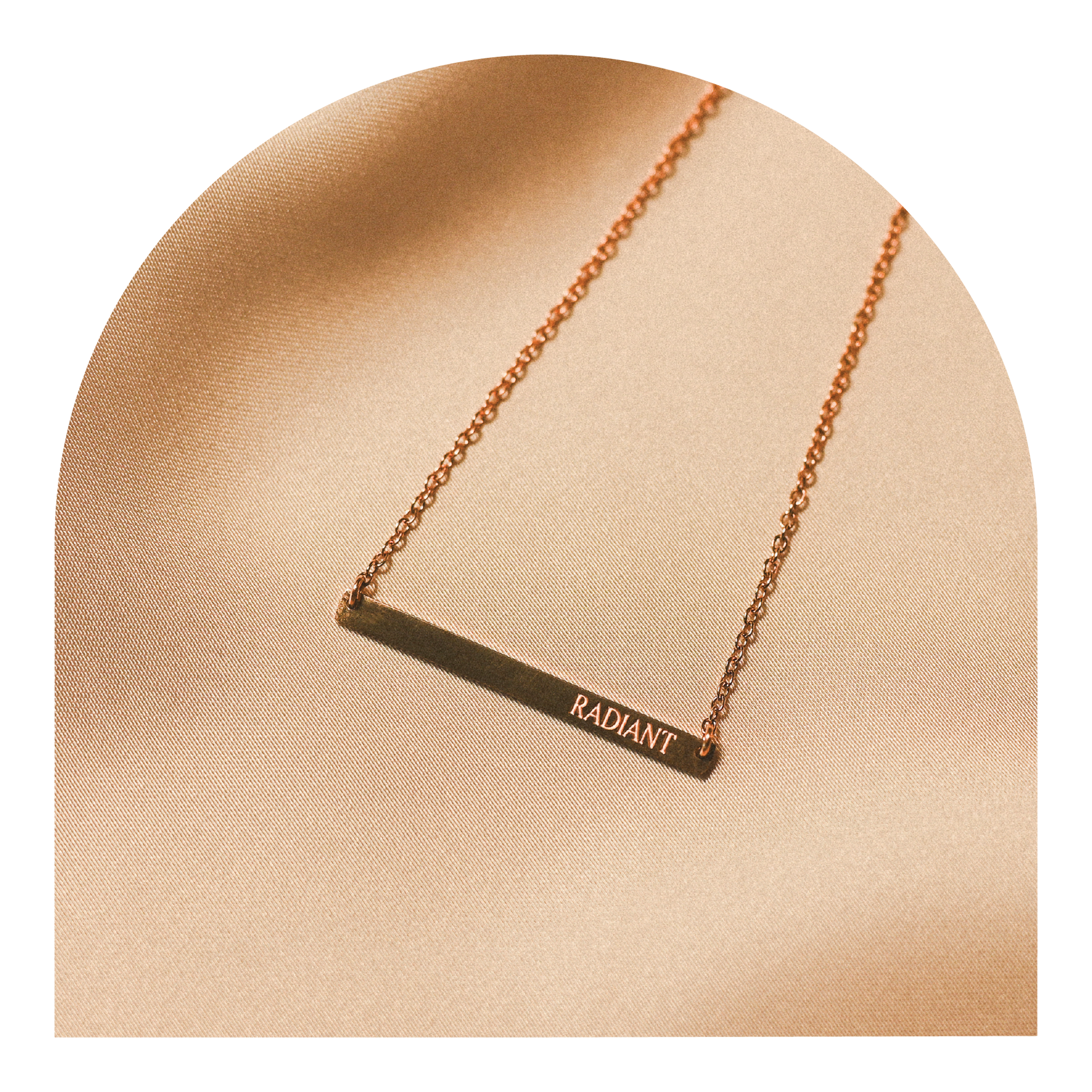 The Radiant Affirmation Necklace is a reflection of your inner glow. It serves as a reminder to embrace your unique light and radiate warmth, positivity, and beauty. With confidence and kindness, you can shine brightly and uplift those around you, illuminating the world with your presence.